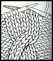 2ème rg: sur les 5 m. end., tric. les 2 premières à l'end., glisser sur 1 aig. auxiliaire les 2 m. suivantes et les laisser en attente derrière le travail, puis tric. les 2 m. suivantes et, à la suite, les m. en attente, une à une à l'endroit. 3ème, 4ème et 5ème rgs: Tric. les m. comme elles se présentent.