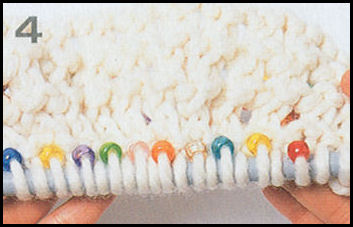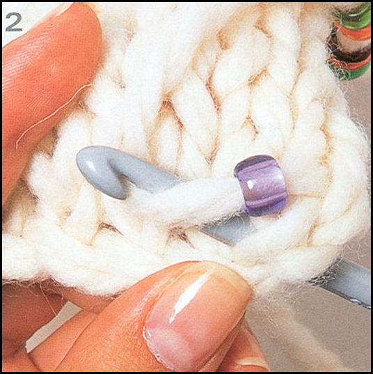 laine sur l'envers, en maintenant ainsi la deuxième perle en place. Il y a