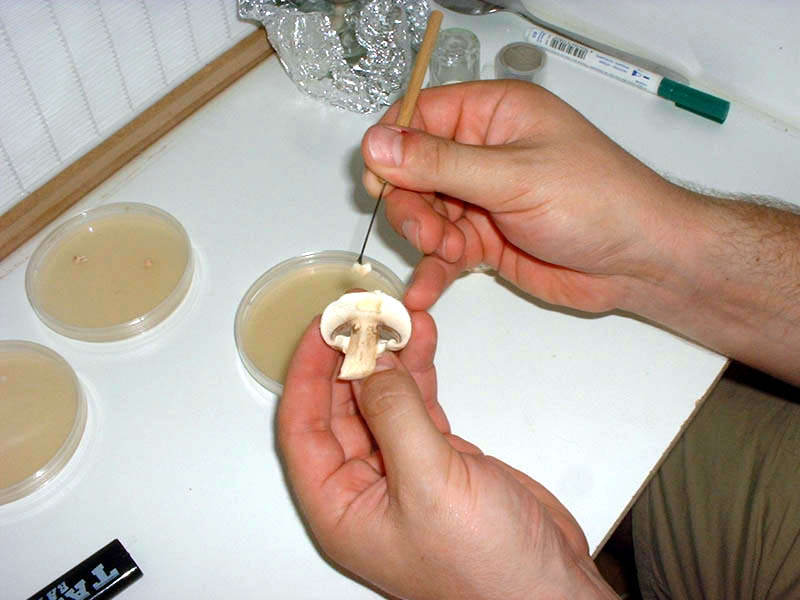 Le but de cette technique est de prélever stérilement un morceau de chair à l’intérieur du champignon et de le déposer sur un substrat stérile (culture liquide, céréales ou milieu gélosé) afin de produire du mycélium.