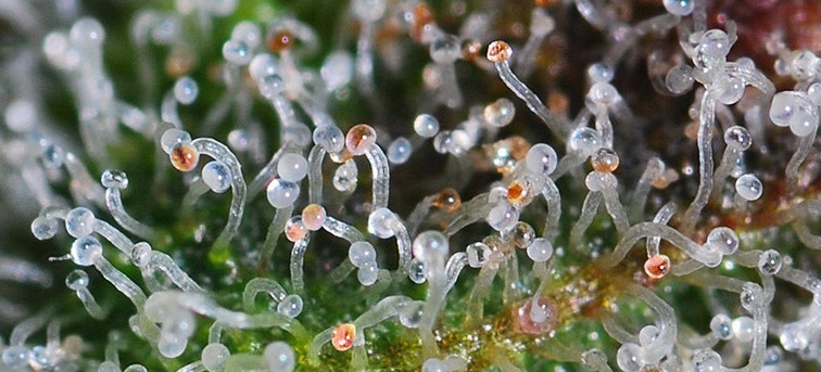 Les pistils sont des structures ressemblant à des poils sur les têtes de cannabis qui émergent du calice et peuvent être facilement identifiés à l’œil nu. Les pistils contiennent les organes reproducteurs de la plante de cannabis femelle et développent une graine s’ils sont pollinisés par un mâle. Ces structures sont blanches au début de la phase de floraison et prennent des couleurs plus foncées (rouge, brun et orange) à mesure que les fleurs se rapprochent de la récolte.