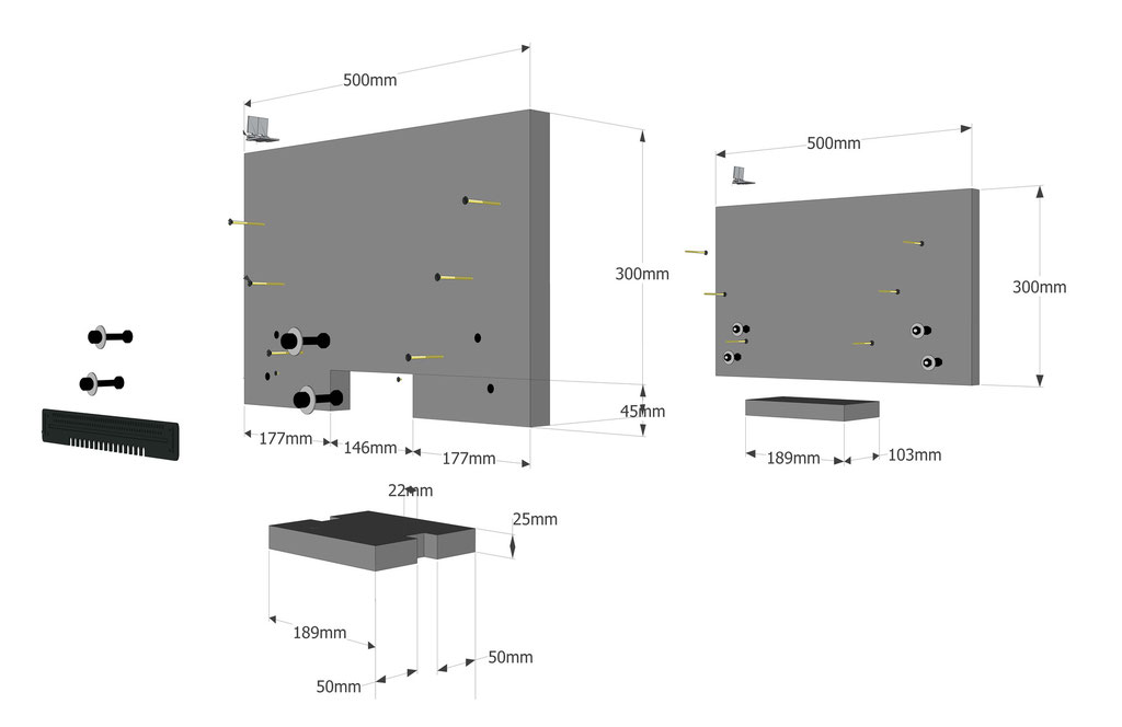 4 d'entre-elles devront faire 500mm (3 pour la baie vitrée et 1 pour la cale de démarrage des lattes).