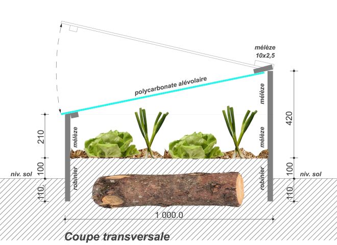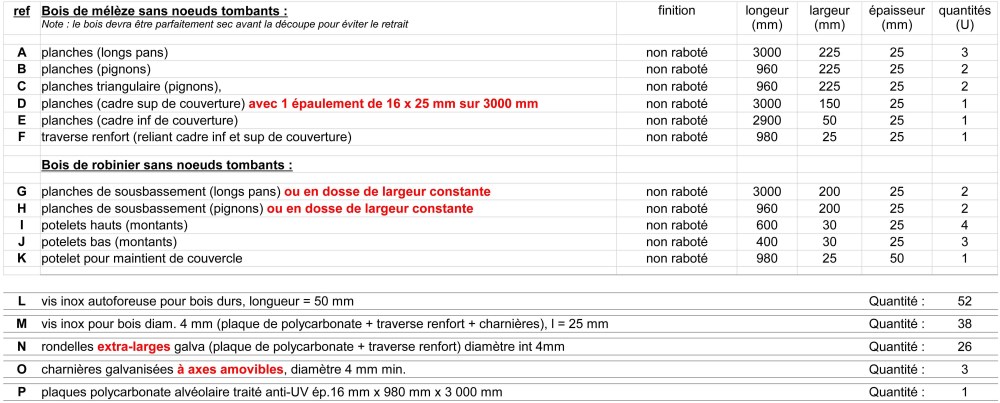 - pas d’essences de bois non durables telles que pin, sapins, etc car le degré extrême d’hygrométrie de l’air intérieur de la serre aura eu raison de votre ouvrage en une ou deux années,